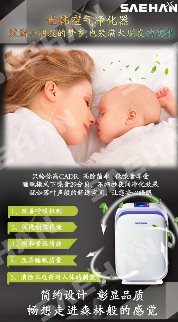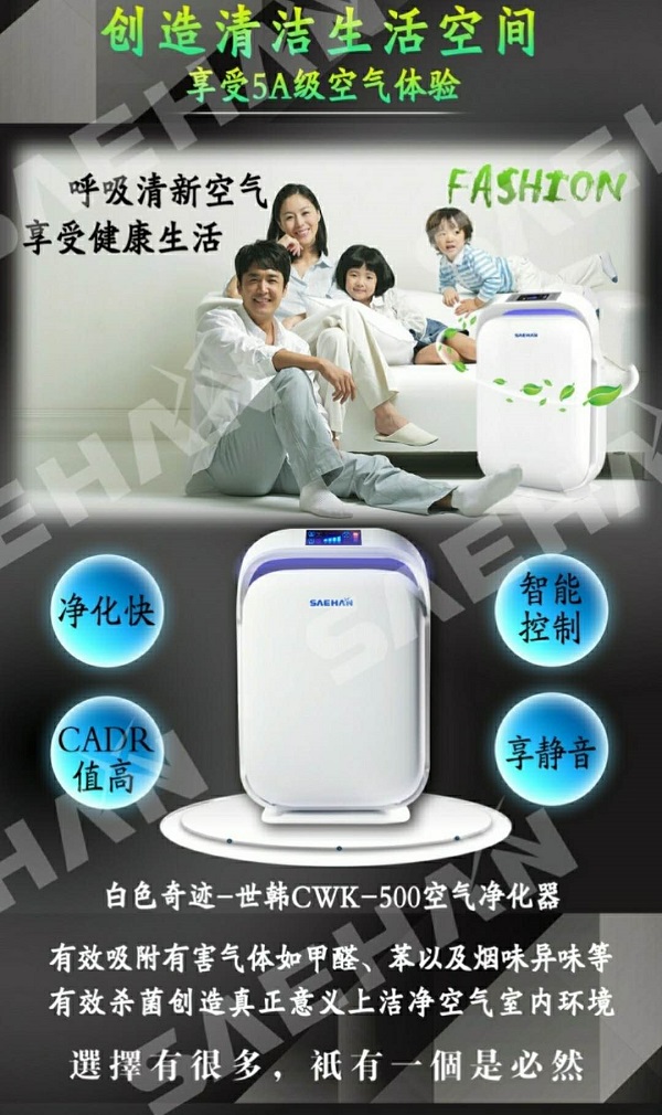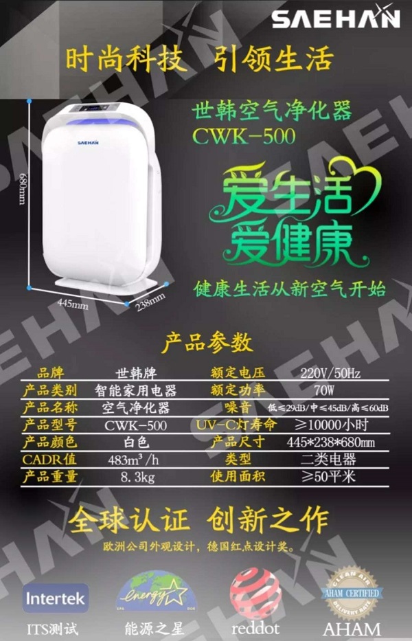 具有較高的污染空氣凈化量,安裝AHAM(美國家電協會)標準嚴格測試,CADR值達到481立方米/小時,在同尺寸國內外品牌凈化器中,凈化效果對比遙遙領先。