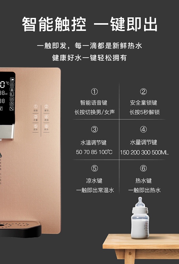 1.無常溫水箱,直進直出,沒有二次污染,絕對做到新鮮用水;