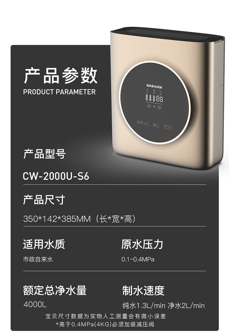 世韓純水機(jī)CW-2000U-S6升級(jí)版配置參數(shù):