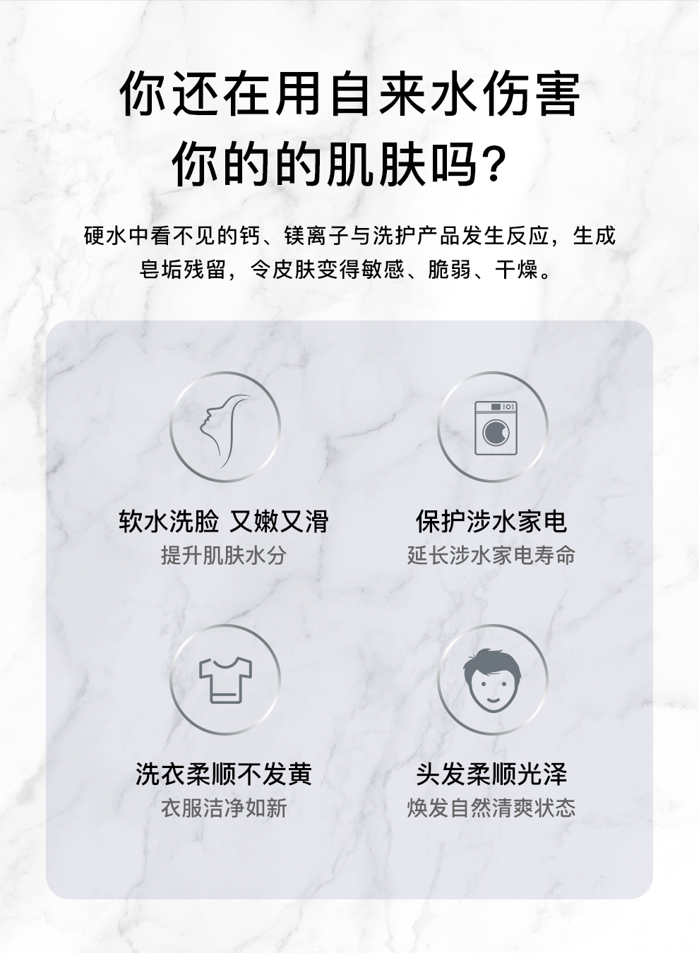 1.使用軟化水淋浴、洗臉,可使皮膚光滑細(xì)膩,對(duì)嬰兒和兒童的皮膚更有保護(hù)作用